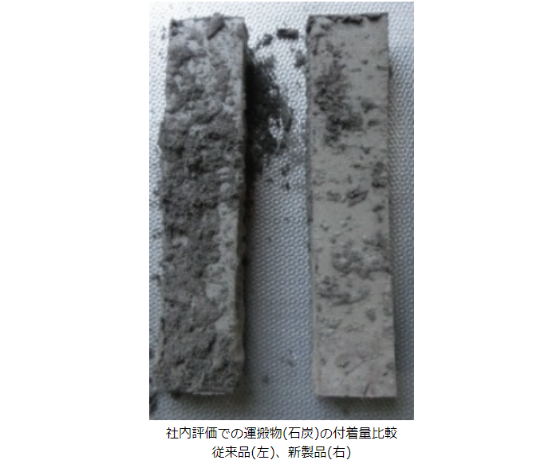 石炭や鉄鉱石の運搬では、従来品と比較して付着量を約80~90%削減しています(社内評価結果)。