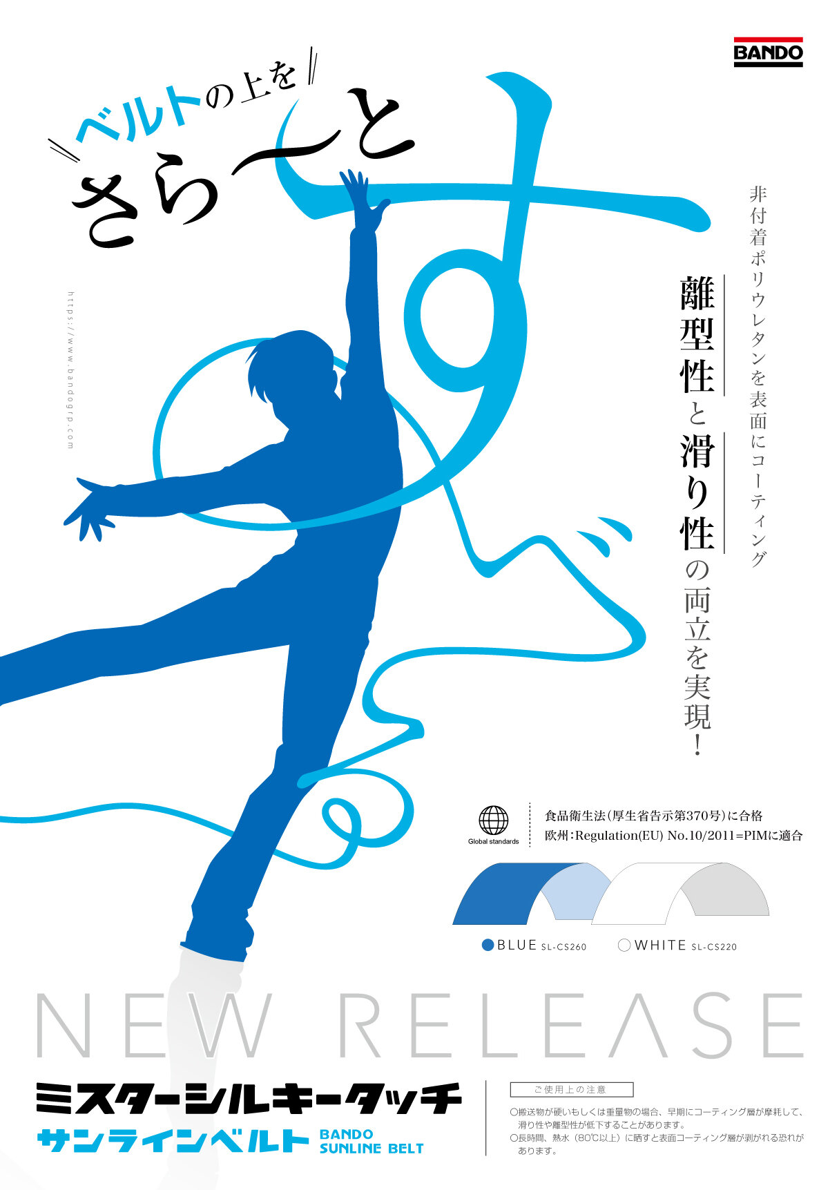 バンドー化学株式会社(本社:兵庫県神戸市)は、このたび、軽搬送用ベルト「サンライン®ベルト」の新たなラインアップとして、食品用非付着性ベルト「ミスターシルキータッチ™」を加え、2020年8月から販売を開始いたしましたので、お知らせいたします。