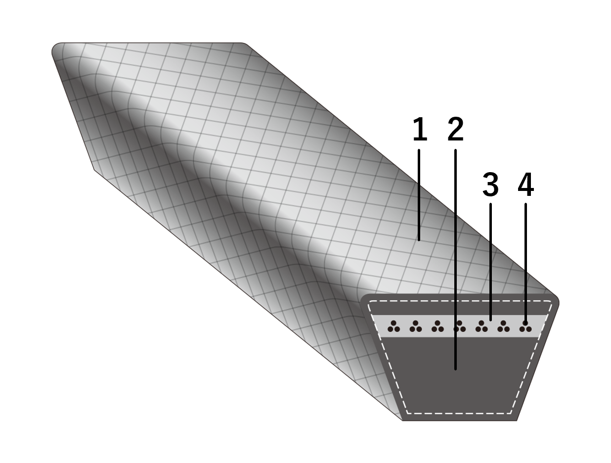 強力で伸びの少ないポリエステルコードと特殊合成ゴム配合を採用し、