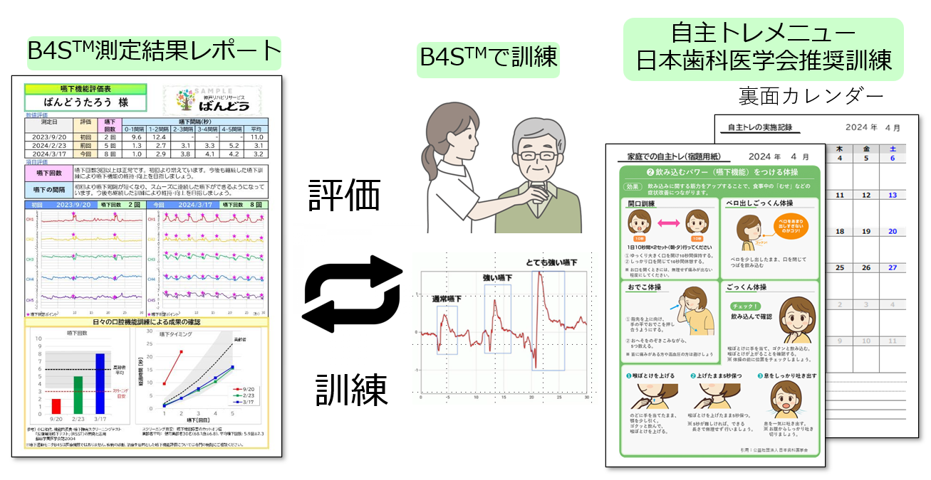 B4S™の「測定結果レポート」により、嚥下機能を数値化、記録、見える化し、