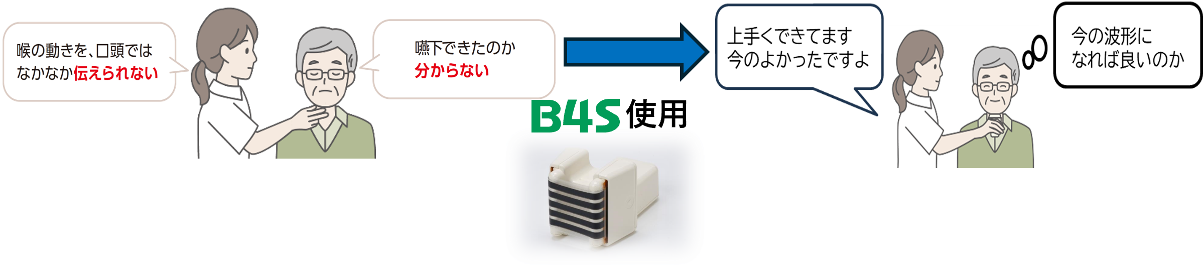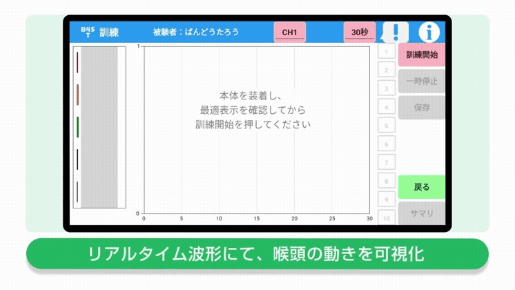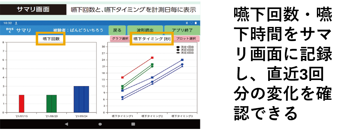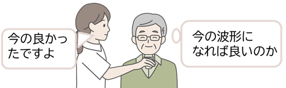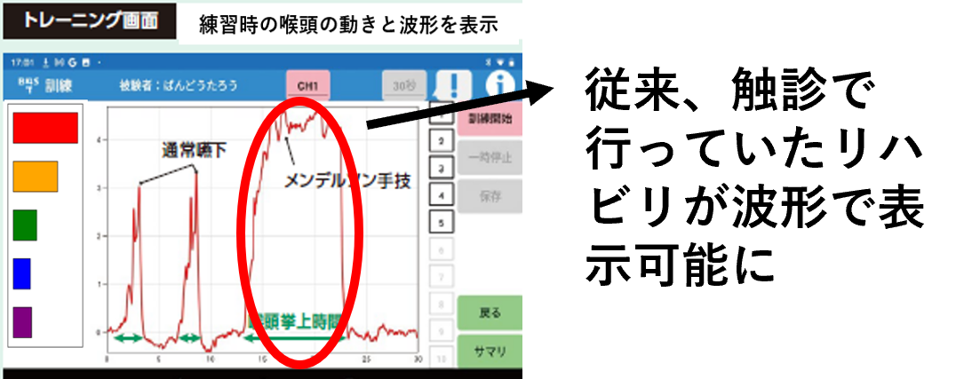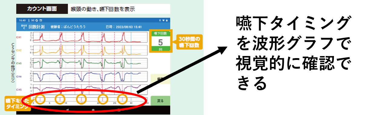 嚥下動作が波形で表示されるから指導が行いやすくなります。